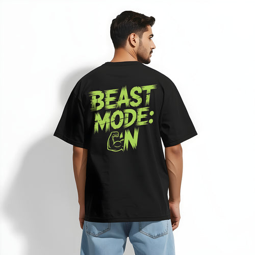 "BEAST MODE: ON" Gym Oversized T-Shirt | Heavyweight 240 GSM Black Fitness Tee