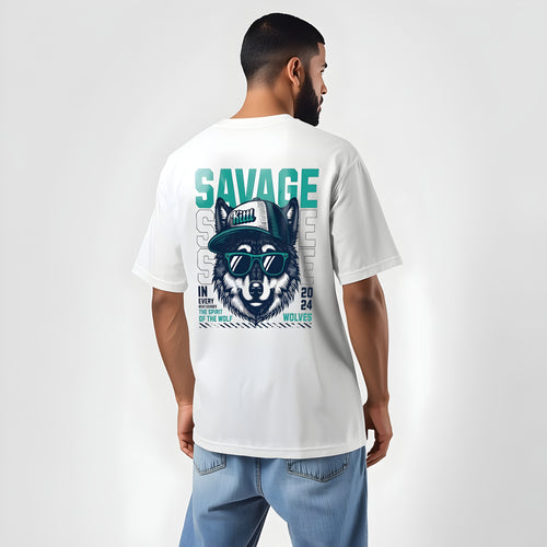 "SAVAGE WOLF" Oversized T-Shirt | Streetwear Graphic Tee | 240 GSM White Cotton